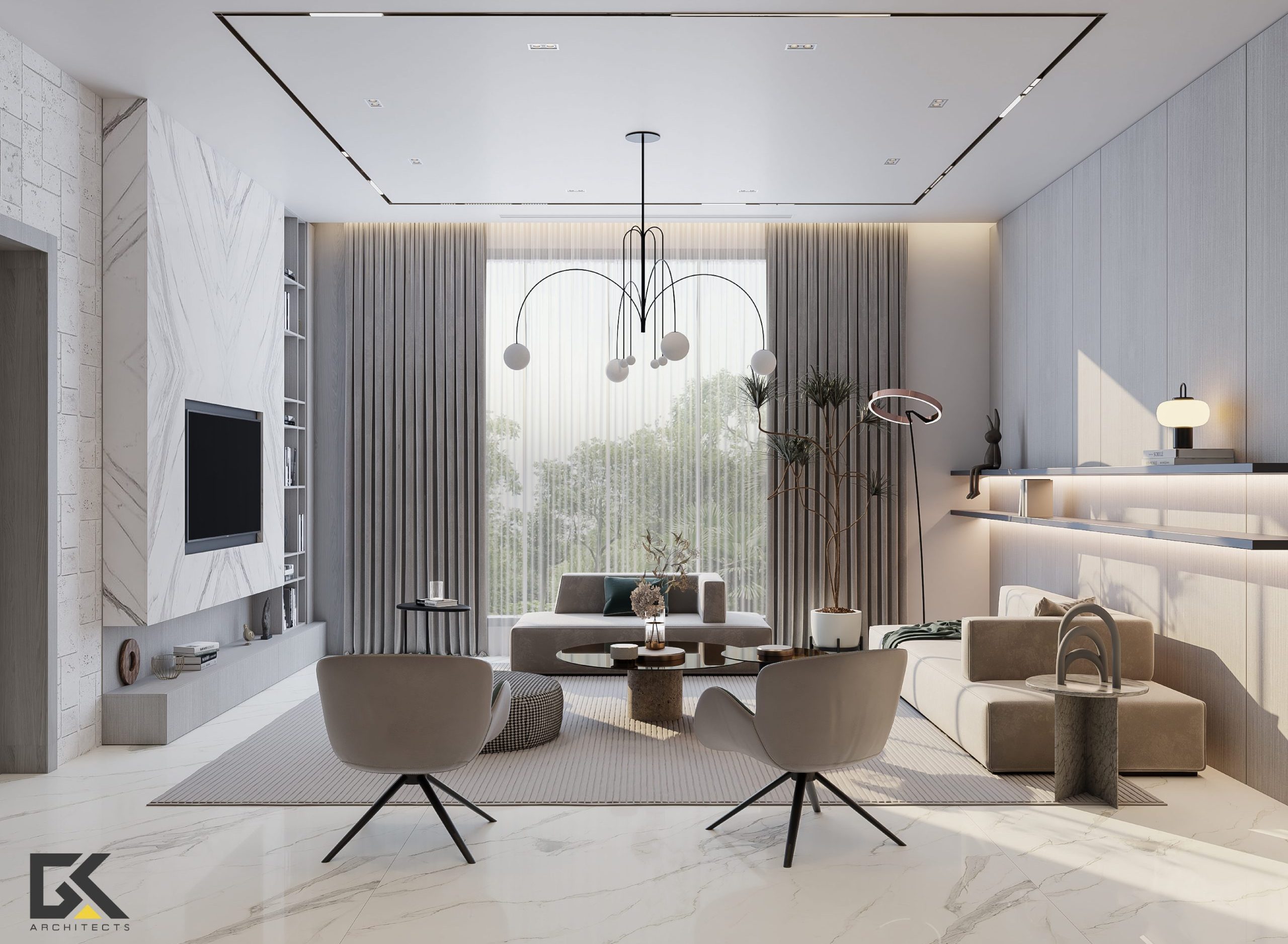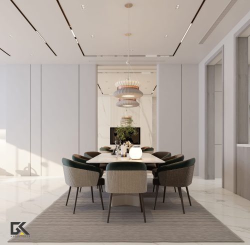 Every element within the home has been thoughtfully composed to achieve perfect harmony between architecture and interior design. Notably, the furniture pieces were custom-designed by GK Architects, blending seamlessly with the overall concept. To elevate the space even further, select universal furniture brands were integrated, bringing a refined international touch to the project.